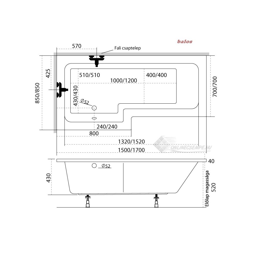 M-Acryl Linea asszimetrikus akryl kád