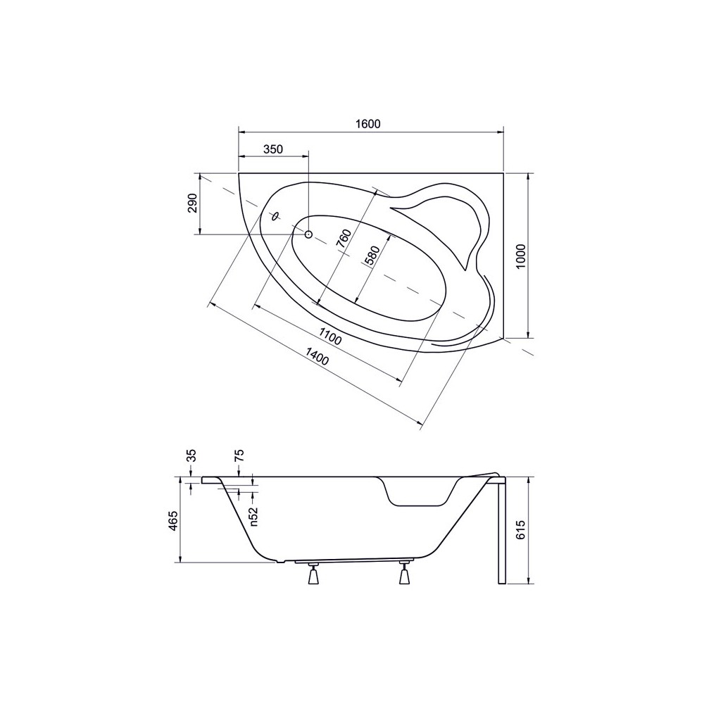Akril aszimmetrikus kád 160x100, jobbos