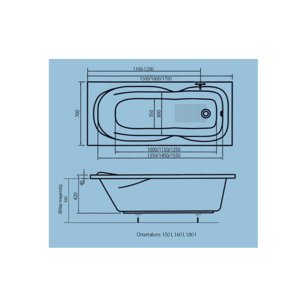 H2O Molly egyenes kád 150x70