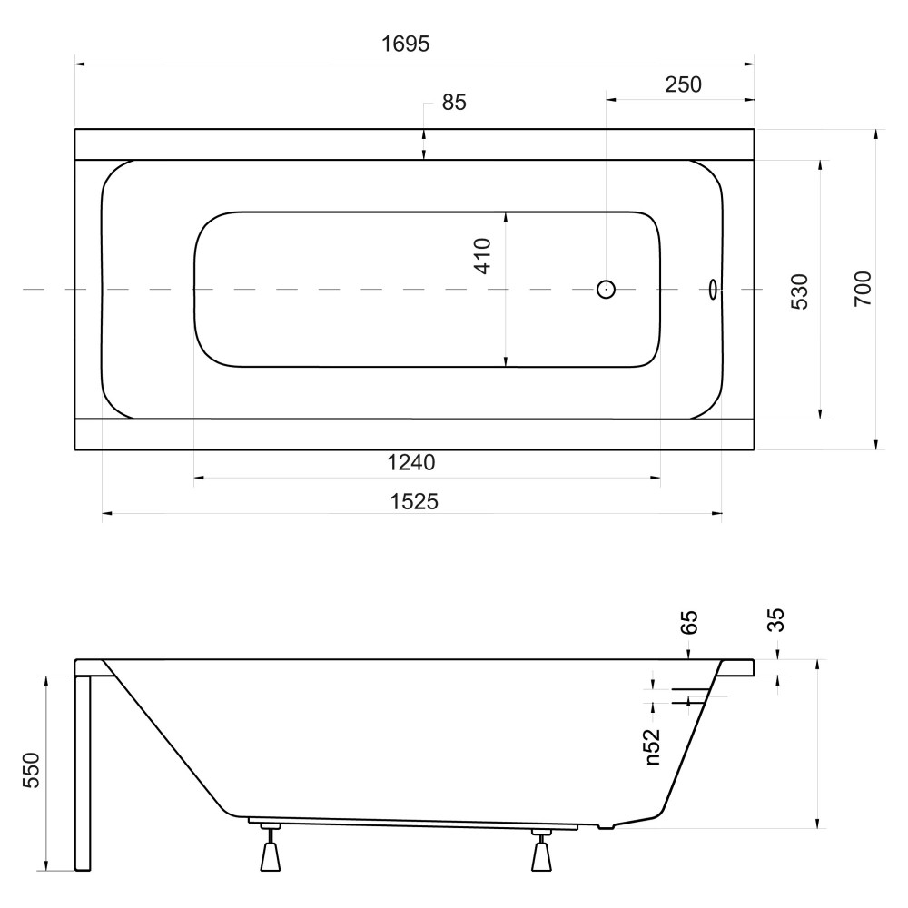 Egyenes akril kád 170x70
